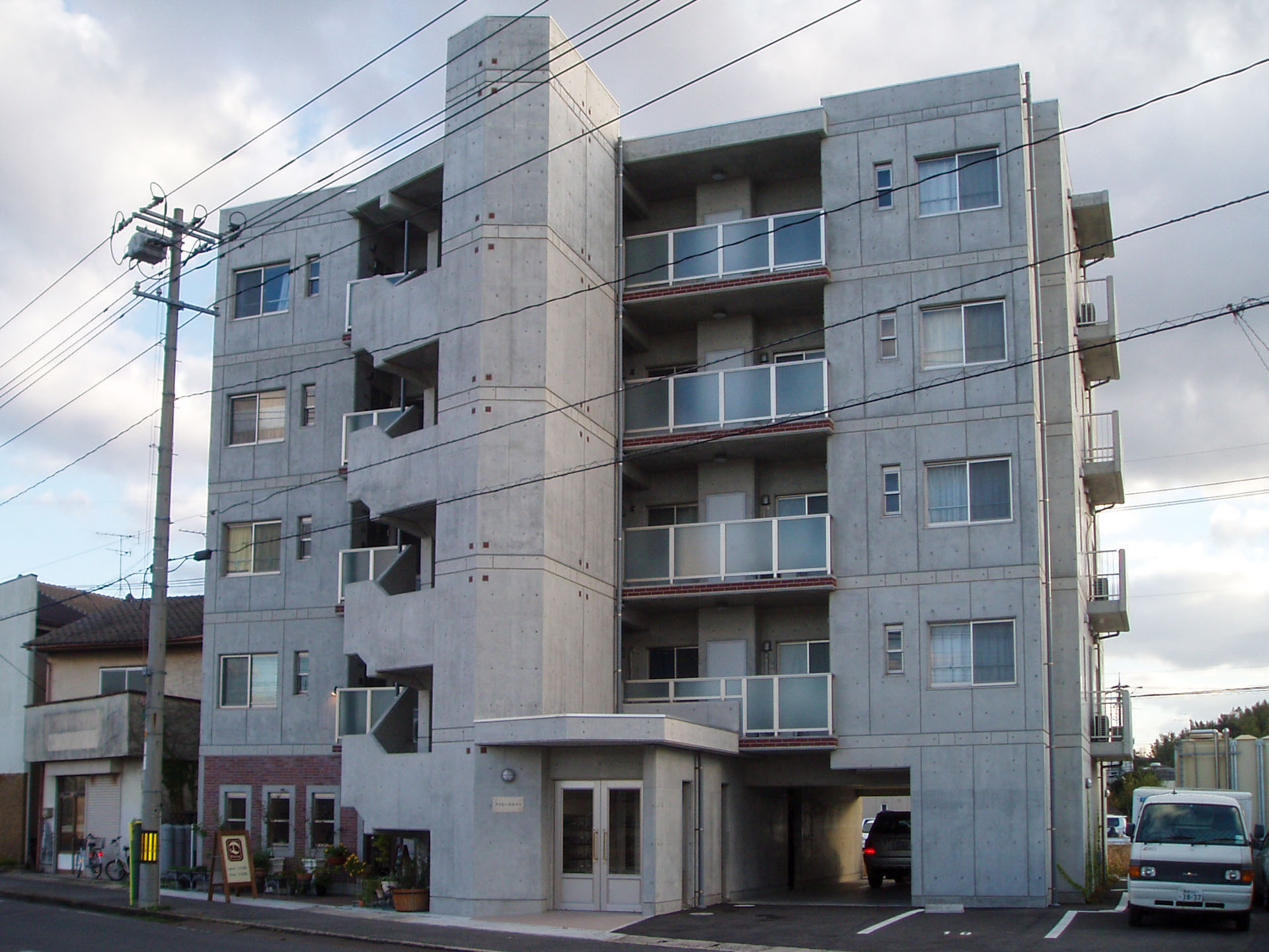 天神川を望む、コンクリート打放しのオール電化マンション
