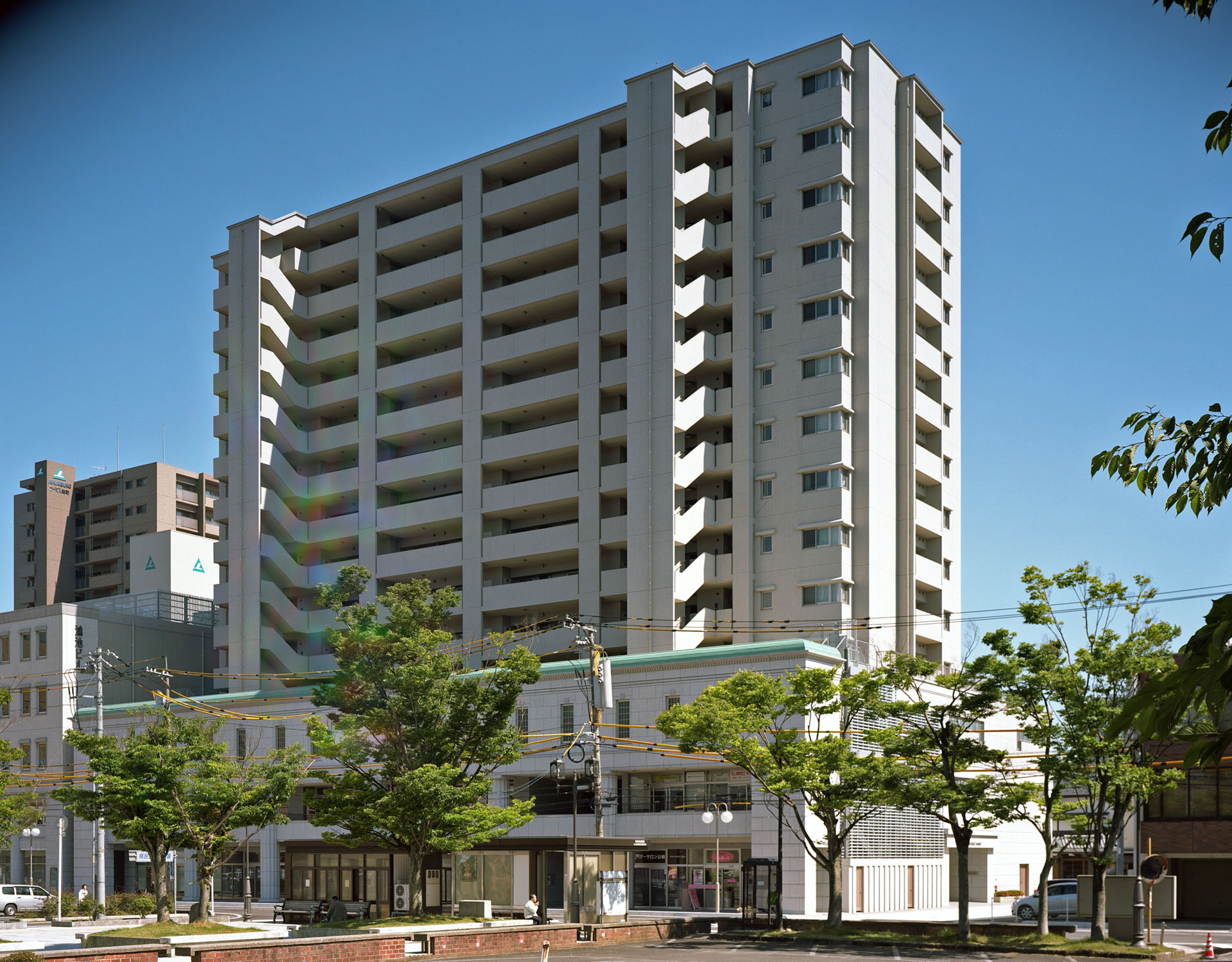 HomeWORKS南殿町再開発事業 南殿町地区第1種市街地再開発事業 西棟 名 称: 南殿町地区第1種市街地再開発事業 西棟 所 在 地 : 島根県 松江市 規 模: 地上14階建て 構 造: 鉄筋コンクリート造 延床面積: 11,457㎡ 用 途: 店舗・共同住宅・駐車場 竣 工: 2008(平成20年) 施 工 者 : 株式会社鴻池組山陰支店 北西側外観 北東側外観 1,2階が店舗と立体駐車場、3階以上が共同住宅 南側外観 3階住戸は専用庭を備える 1階店舗外廊下 1階店舗階段 2階店舗廊下 1階共同住宅出入口 共同住宅玄関風除室 立体駐車場内部 店舗 住宅