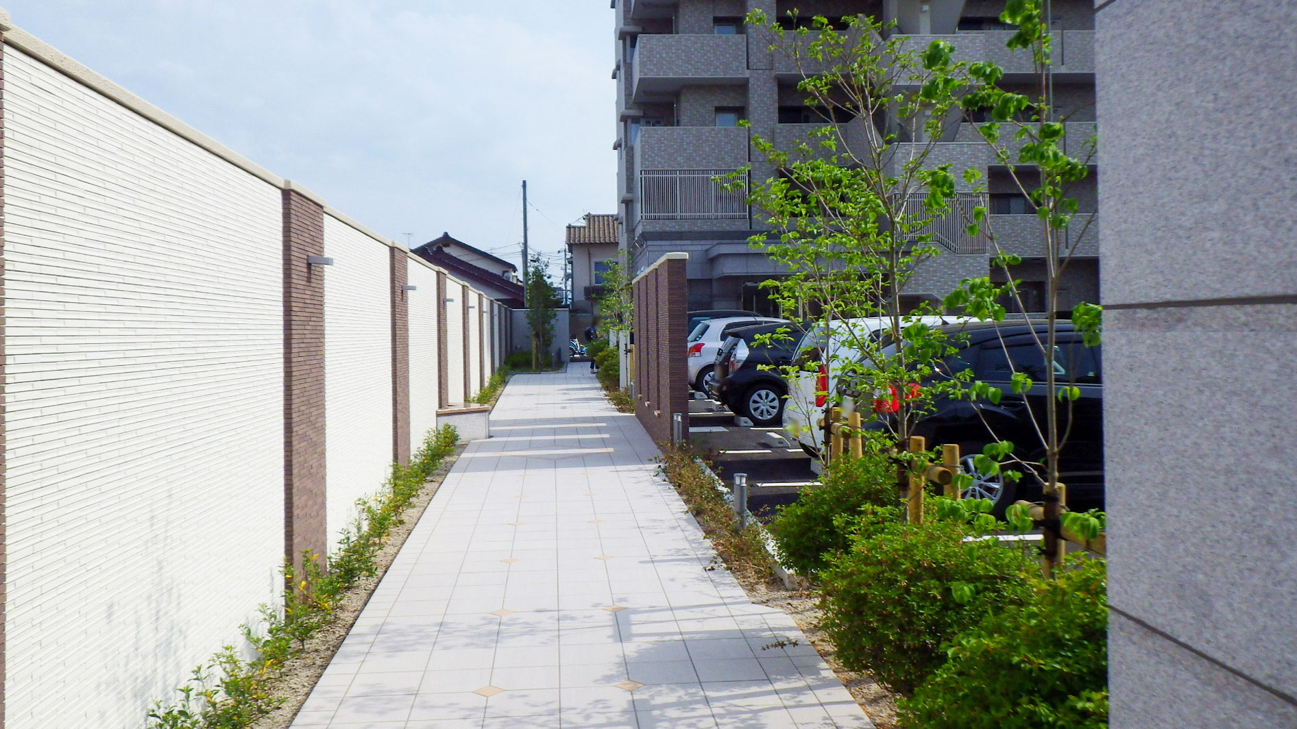 HomeWORKSアルファステイツ北田町 アルファステイツ北田町 1階住戸に専用庭と収納庫を計画した大手デベロッパーの共同住宅 名 称: アルファステイツ北田町 所 在 地 : 島根県 松江市 規 模: 地上10階建て 構 造: 鉄筋コンクリート造 延床面積: 2,264㎡ 用 途: 共同住宅 竣 工: 2013(平成25年) 施 工 者 : 株式会社鴻池組 ゲートから全体を望む アプローチ エントランス外観 風除室内部 全体外観 住宅
